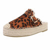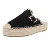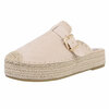 Beige daimen mule met siergesp en canvas platformzool.
