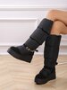Beige winterboot met gemoltoneerde waterdichte stof en dikke profielzool.Detail in strass