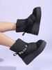 Beige winterboot met waterdichte stof +gewatteerd en opschrift.Cozy en warm