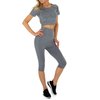 Blauwe 2 delige fitness-yoga outfit met hoge taille.Korte mouwen.ONE SIZE = XS/34,S/36,M/38,L/40
