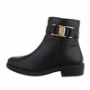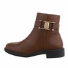 Bruin laag enkellaarsje met gouden schakeldeco.
