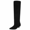 Bruine hoge suede overknee laars met korte naaldhak.