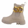 Trendy beige Chelsea boot met ketting deco.Verwijderbare ketting.