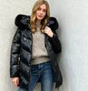 Cozy licht blauwe midi gewatteerde winterjas met shiny look