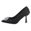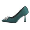 Groene pump met frontdecoratie in strass en originele naaldhak.