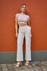 Hippe cream cargo broek met hoge taille.2 chinozakken, 2 klassieke zakken achter, 2 cargozakken opzij