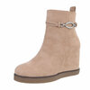 Zwart suede enkellaarsje met interne sleehak en strass decoratie