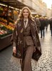 Variatie: Kaki groene winter sjaal met print in wol mix