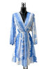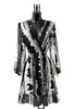 Korte zwart-witte wikkeljurk met moderne print