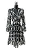 Korte zwart-witte wikkeljurk met print en met doublure.Made in Italy.