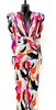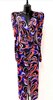 Variatie: Lange purper-zwarte-oranje bodycon jurk.