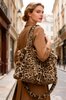 Leopard printed schoudertas in imitatiebont op camel achtergrond