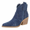 Licht blauw western-biker enkellaarsje in jeansstof.Used look