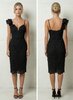 Prachtige zwarte midi jurk in kant met one shoulder off en open rug.