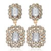Rechthoekige duo witte oorbellen ingelegd met grote en kleine bergkristallen.