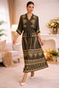 Elegante taupe maxi jurk met goud borduursel – luxe en verfijnde uitstraling