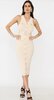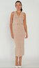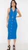 Taupe 3/4 bodycon jurk met knoppendecoratie en bijhorende riem