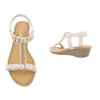 Trendy lage witte sandaal met bloemversiering en strass .Lage sleehak.
