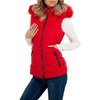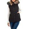 Zwarte gewatteerde bodywarmer met 2 afsluitbare zakken-2 steekzakken en afneembare pels+capuchon.Binnen gevoerd.