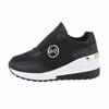 Wit-zwarte hoge sneaker met wedge zool.Gouden decoratie.