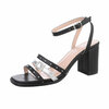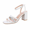 Witte hoge sandaal met siergesp+strass decoratie en blokhak.