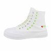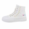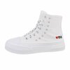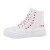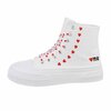 Witte hoge textiel sneaker met rode harten+extra paar veters.