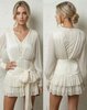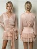 Exclusieve zwarte mini jurk met delicate kant, transparante mouwen en fijn geplisseerde details. De elegante tailleband accentueert het silhouet en creëert een sensuele, high-end uitstraling.