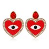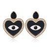 Zwarte oorbellen in hartvorm met oog.